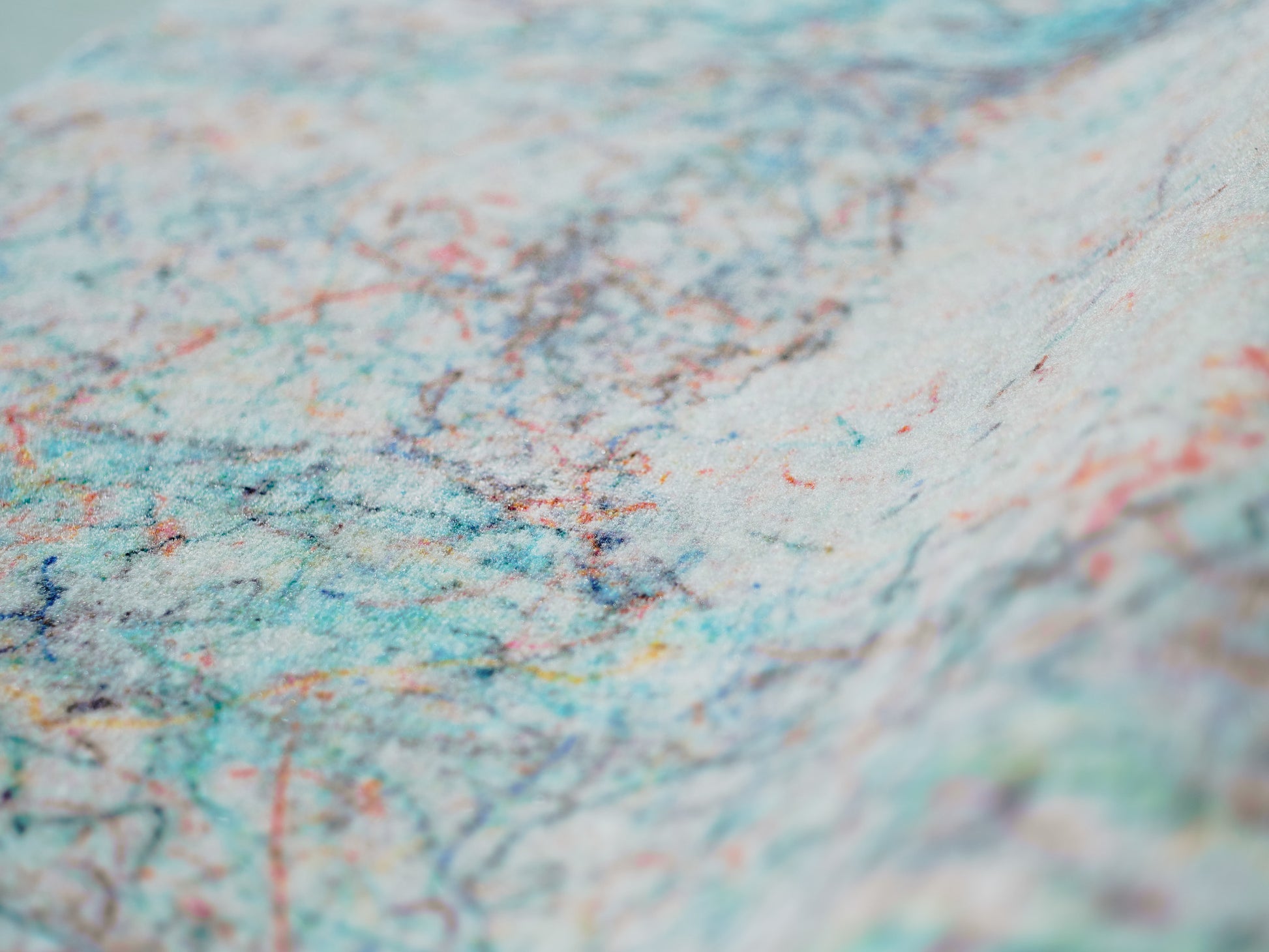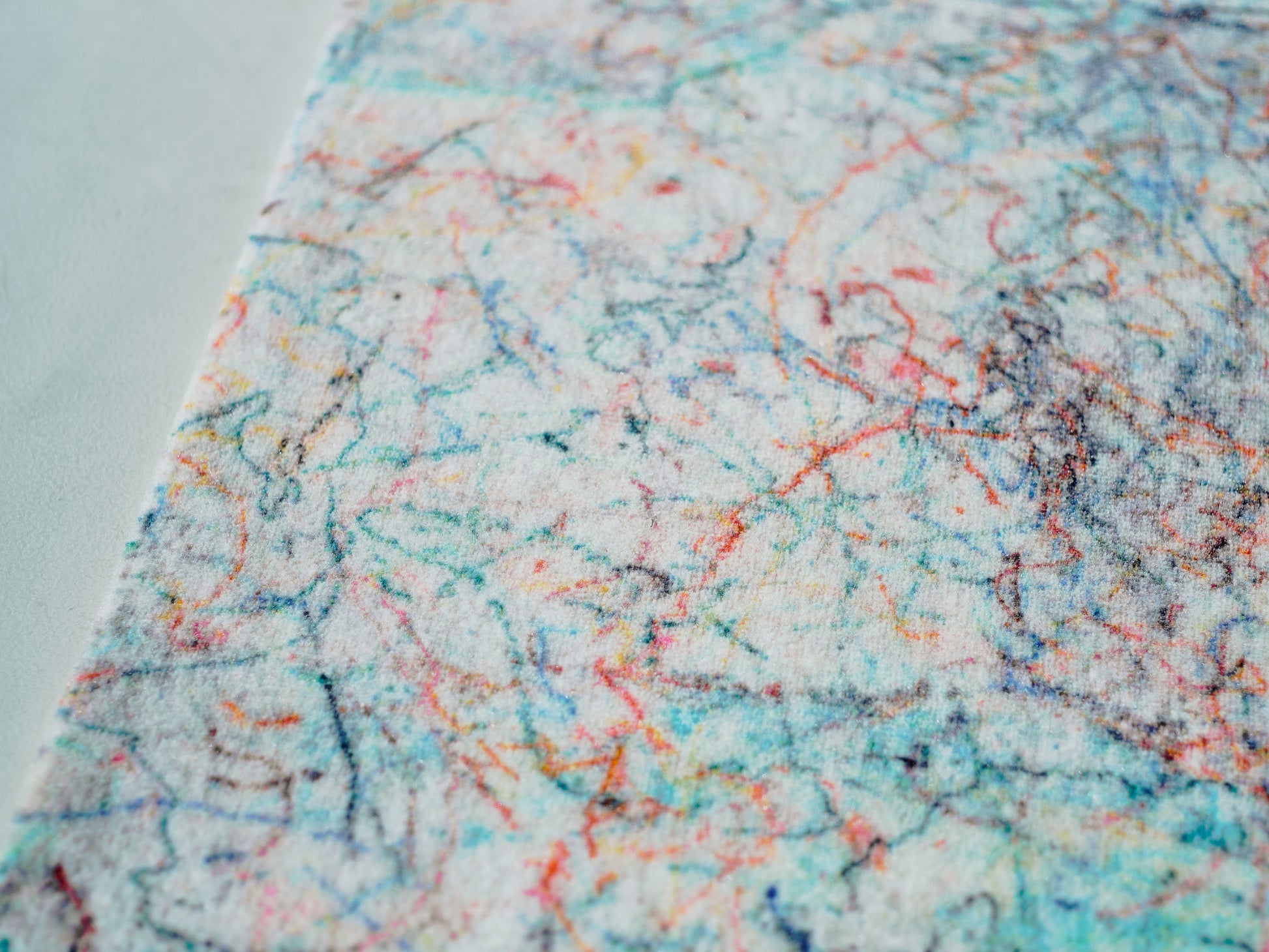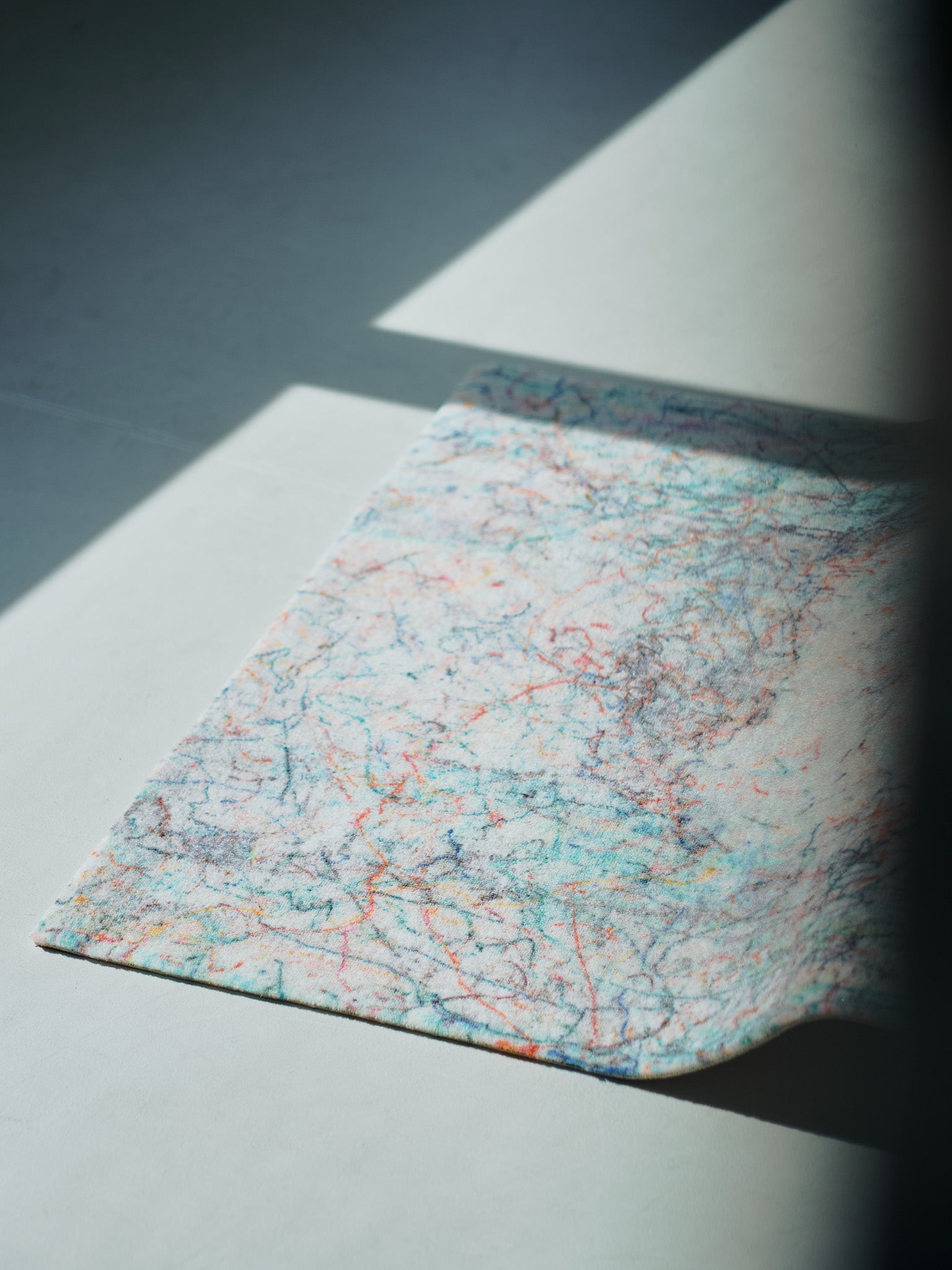 アーティストが描いた原画を仔細に表現しているため、ラグの表面に細かい点などがございますが品質に問題はございません。
